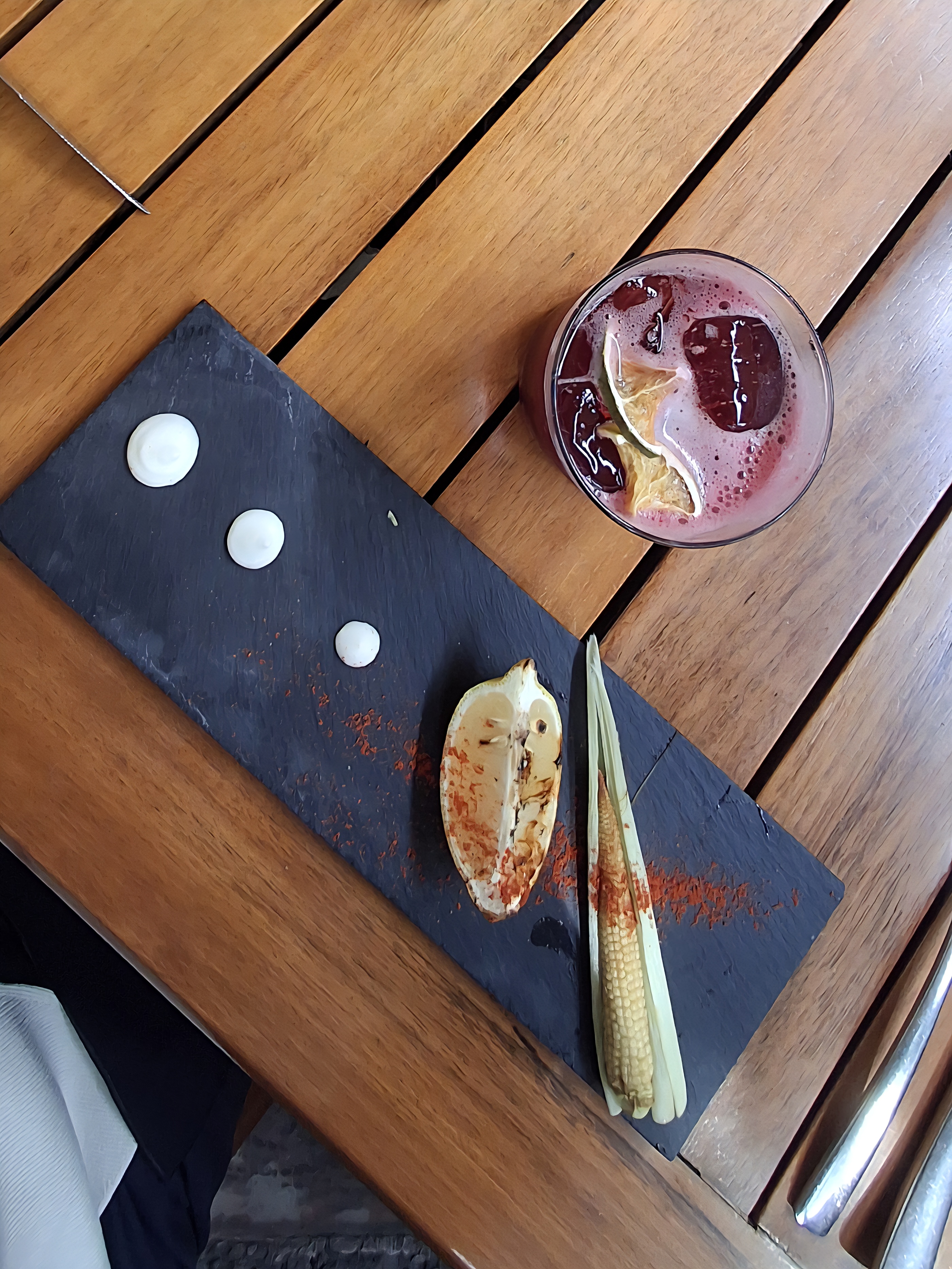 A mí me sugirieron que pidiera coctelería, para acompañar mi comida, empecé con un tequila con frutos rojos, luego un ron con maracuyá y mango, y cerré con un carajillo. El de ron fue mi favorito: fresco, suave y nada dulce.