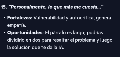 - Ya con este draft, le pido una retroalimentación puntual: fortalezas y oportunidades por párrafo sin que modifique nada.